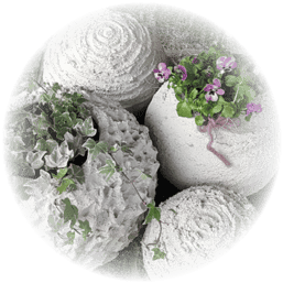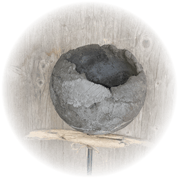 Aus speziellem Beton modellierst du 1-3 rustikale Hohlkugeln bis 35 cm Durchmesser.