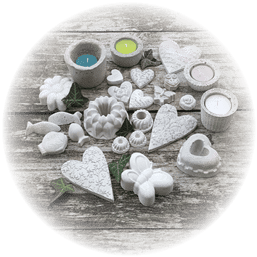 ... sie dürfen viiiieele kleinere Formen wie Härzli, Gugelhöpfli, Röseli, Sternli, Teelichter, Schäli mit Hilfe einer erwachsenen Begleitperson giessen.